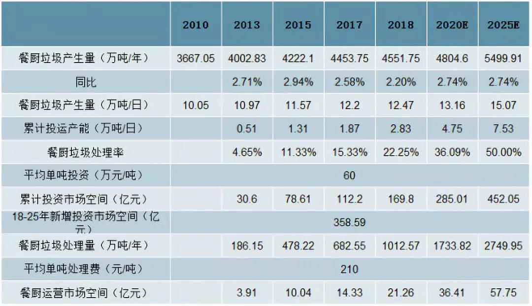 餐廚垃圾投資及運(yùn)營市場空間測算