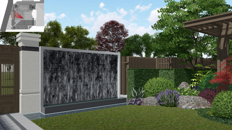 信陽別墅庭院由袁瑩瑩設計,客戶要求花園要有休息的涼亭,庭院的空間要相對封閉,有一個屬于自己的獨處環境。