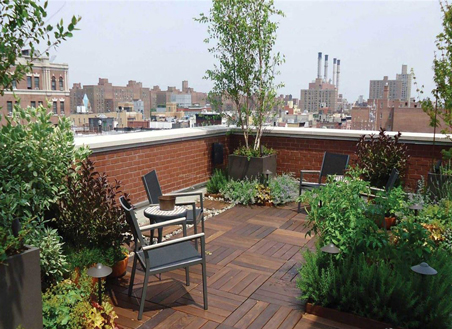 屋頂花園設計中的植物可以使用無土栽培的草坪,帶芳香和彩色的植物應用這樣我們不需要出門也一樣能聞到花香,選擇適合屋頂生長環境的植物品種。