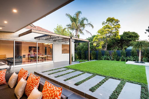 4)在別墅庭院景觀設(shè)計中,石頭這類耐用的材料,不僅僅可以用作裝飾品,還可做地板的天然材料,另外,在門口也越來越流行安放一塊大理石踏板,用來烘托房子的品位。